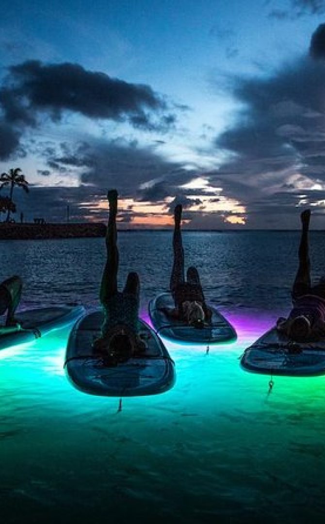 Night SUP Yoga in Honolulu, Hawaii